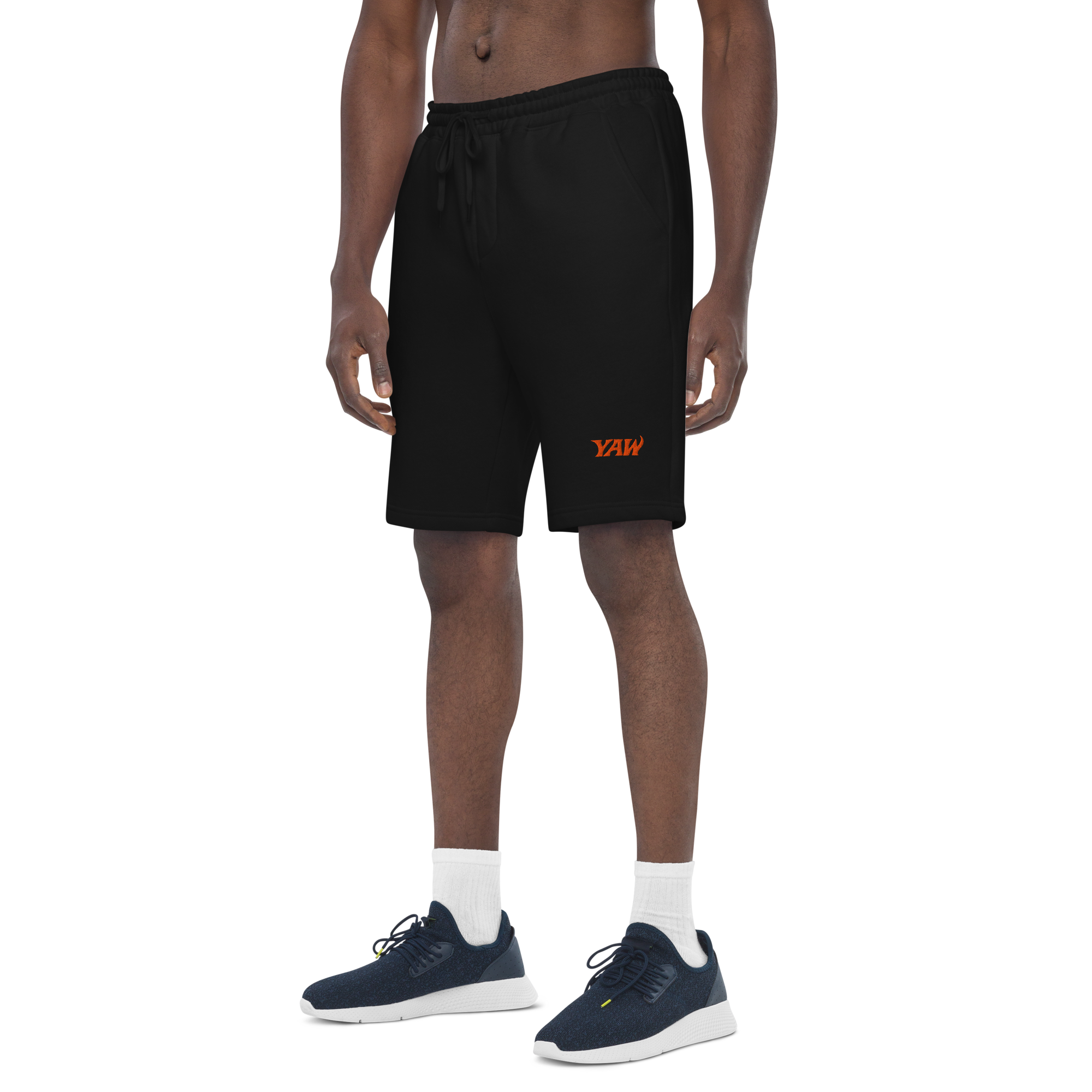 The men’s fleece shorts are soft, comfy, and great for lounging indoors or going out. The shorts have 1 back pocket, 2 jersey-lined hand pockets, and an elastic waistband with a shoestring drawcord.